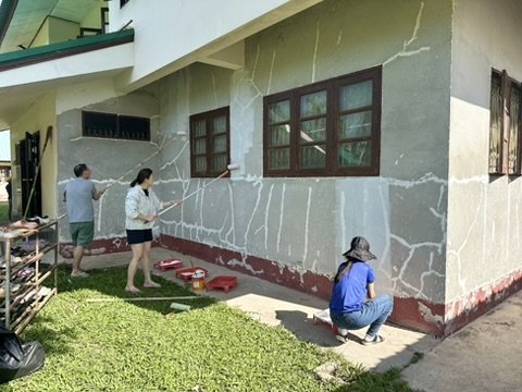 Det var derfor ekstra hyggelig når vi for noen måneder siden fikk forespørsel fra hovedkontoret for Jotun i Thailand om de kunne komme til oss å ha en team building samling som de ville kombinere med et CSR prosjekt. CSR betyr Corporal Social Responsibility og handler om at selskaper ikke bare skal fokusere på profitt, men også bidra positivt til samfunnet og redusere negative konsekvenser av sin virksomhet. Så ikke bare fikk vi gratis maling fra Jotun, men nå skulle vi også få hjelp til malingsarbeidet.
